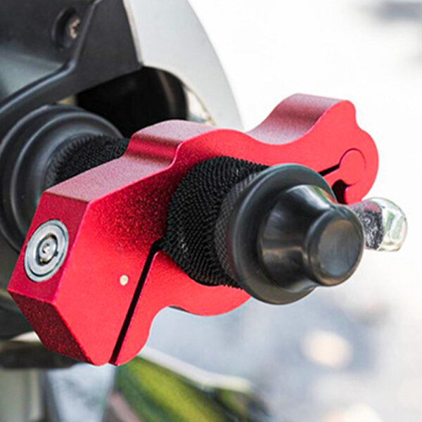 Il Blocca Manubrio MotoGuardia è un dispositivo compatto ad alta sicurezza progettato per immobilizzare la leva del freno anteriore della vostra motocicletta agganciandosi al manubrio. Funziona anche come blocca casco, fornendo una protezione doppia per la vostra moto e il casco.